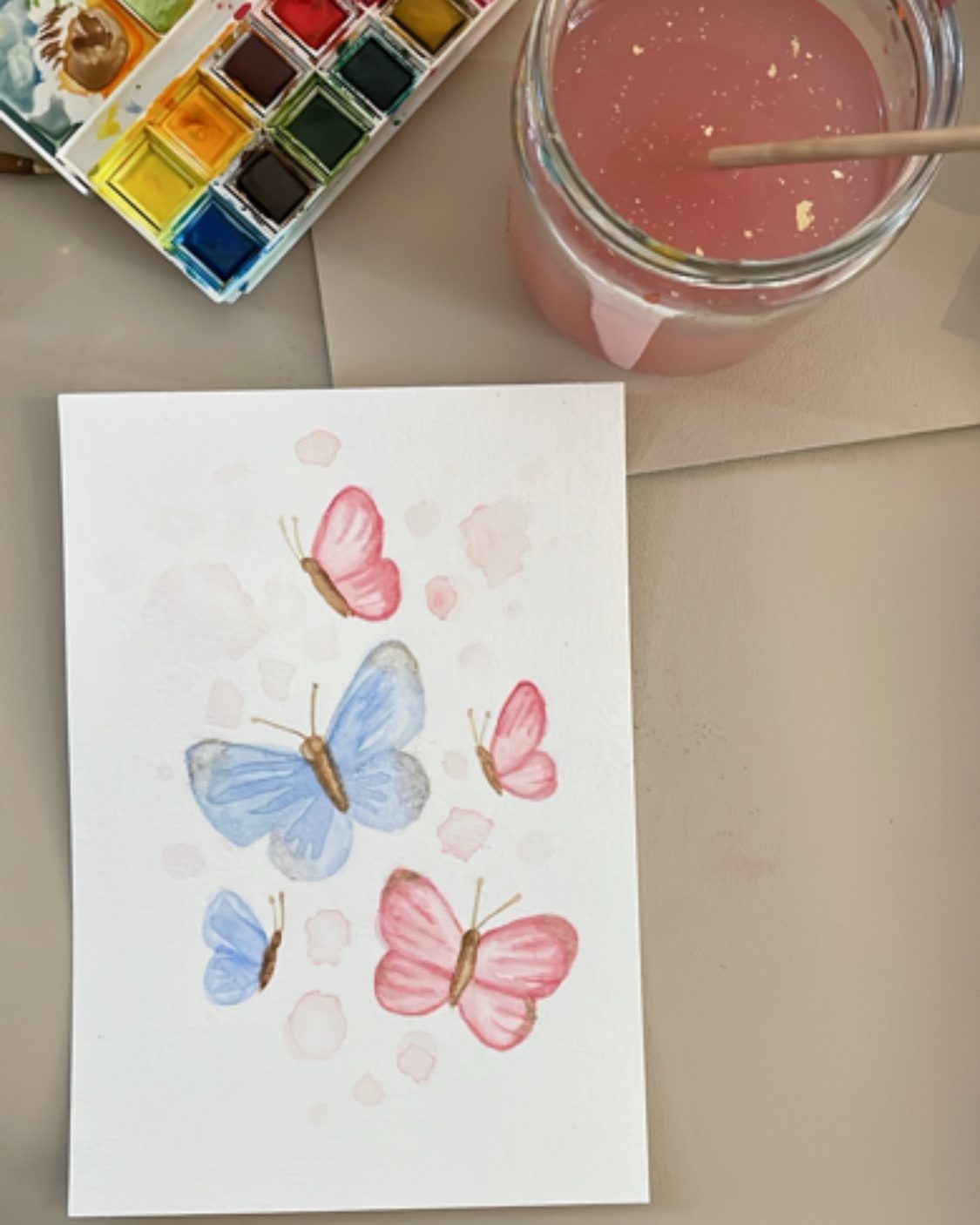 - Anschließend bemalt ihr Postkarten aus hochwertigem Aquarellpapier, die ihr der werdenden Mama nach der Geburt Woche für Woche mit ein paar lieben Worten zusendet.